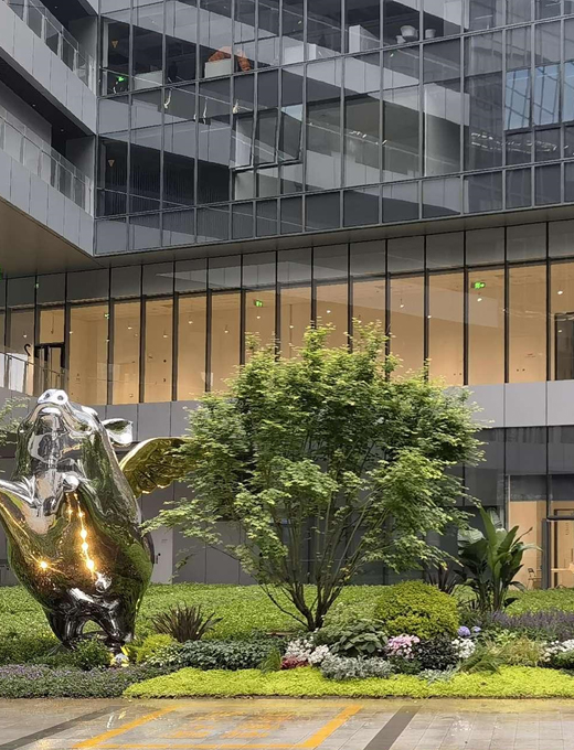 南京小米集团华东总部项目园林景观工程,包括铺装及道路、景观小品、园林绿化、水景雕塑、特色楼梯等。园林景观面积约3万平,工期120日历天。江苏省重大计划开发项目、南京市名企落户计划的重点工程。项目“园中园”设计理念,通过巧妙结合江苏的历史文化特色和当地的人文习惯,现代设计手法赋予传统空间全新演绎,重构园区内人际关系与产业网络。项目中的几栋建筑以大楼合围形成四边形,中庭内还矗立着一座透明圆形建筑,整体呈现出一个“回”字的视觉效果。