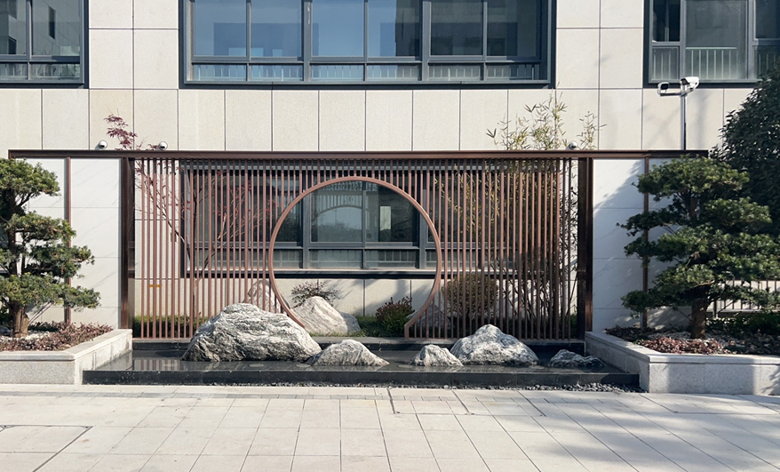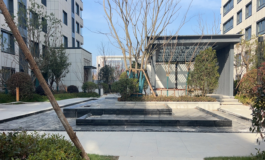 该项目涉及园路广场铺装、干挂石材景墙、水池及其给排水、廊架、车棚、坐凳、架空层格栅吊顶、塑胶健身广场、路灯照明、喷灌、海绵城市设施安装、雨水口、绿化土方内倒、平整、起坡造型等,在设计过程中,注重生态环境的保护、人文情怀的体现、安全性和功能性的兼顾,并通过合理的布局和选择合适的植物和照明设备来增加小区的观赏性和美观性。