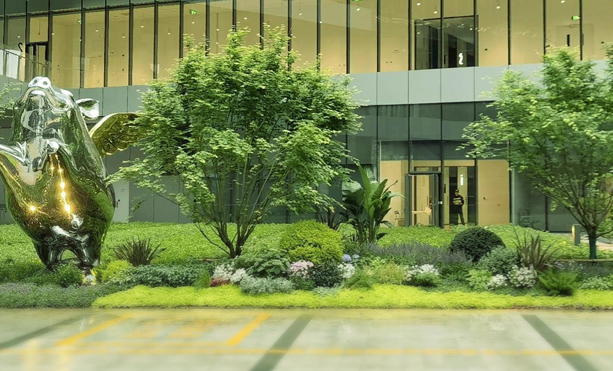 南京小米集团华东总部项目园林景观工程,包括铺装及道路、景观小品、园林绿化、水景雕塑、特色楼梯等。园林景观面积约3万平,工期120日历天。江苏省重大计划开发项目、南京市名企落户计划的重点工程。项目“园中园”设计理念,通过巧妙结合江苏的历史文化特色和当地的人文习惯,现代设计手法赋予传统空间全新演绎,重构园区内人际关系与产业网络。项目中的几栋建筑以大楼合围形成四边形,中庭内还矗立着一座透明圆形建筑,整体呈现出一个“回”字的视觉效果。